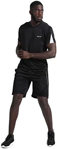 BUYJYA Men’s Workout Clothes Athletic Shorts Shirt Set 3 Pack for Basketball Football Exercise Training Running Gym