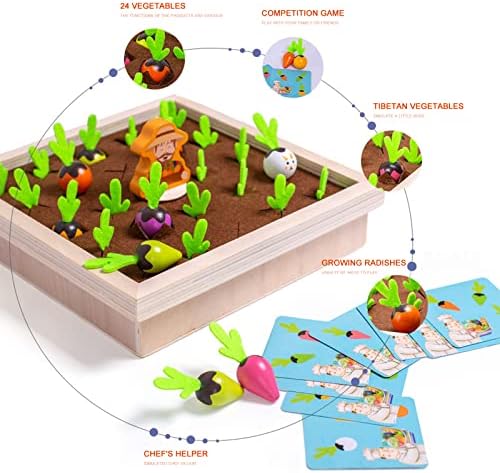 Carrot Harvest Game Wooden Toy, Baby Boys and Girls 1-6 Years Old Montessori Toys,Educational Shape Sorting Matching Puzzle Gift Toy, , Multifunctional Orchard Toy 24 Carrot , 8 Memory Cards
