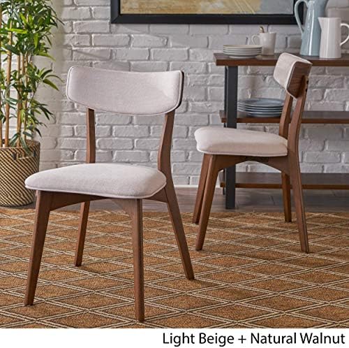 Christopher Knight Home Abrielle Mid-Century Modern Dining Chairs with Rubberwood Frame, 2-Pcs Set, Light Beige / Natural Walnut