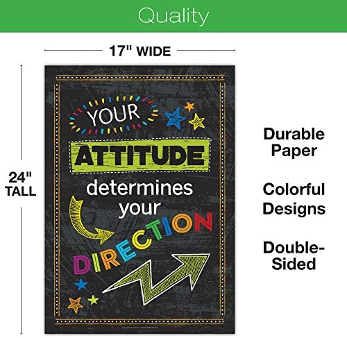 DECORATIVE DESIGNS: Our colorful chalkboard style double-sided motivational posters include 10 different decorative chalkboard designs with inspirational quotes for kids and adults alike. The perfect posters to enhance and decorate your Home, Office, Classroom, or Playroom.