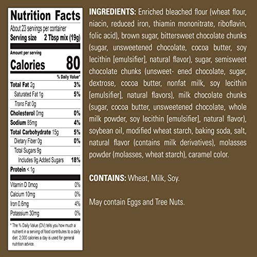 INGREDIENTS WE’RE PROUD OF: Our mouthwatering cookie mix is made with three kinds of rich chocolate chunks and no artificial flavors and no artificial preservatives.
