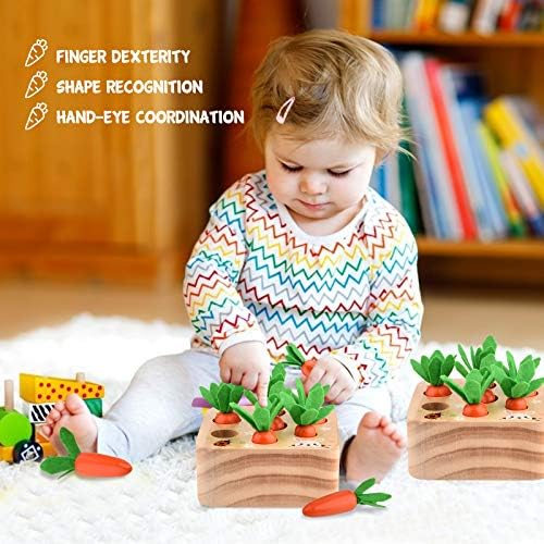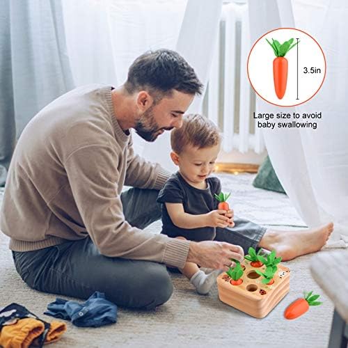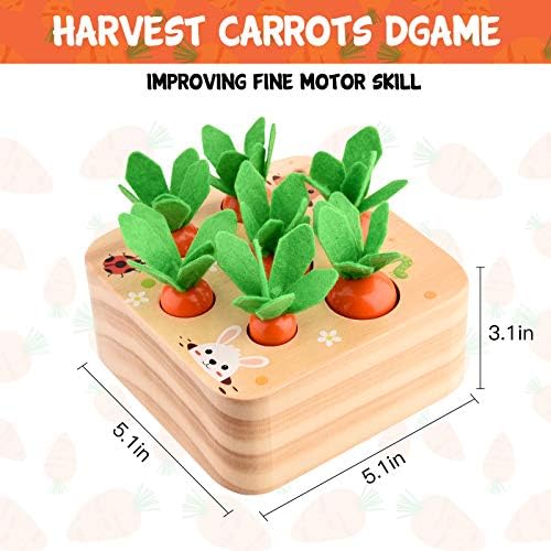 🥕 Educational Wooden Toys: This Toddler toy is a new kind of learning toy, baby needs to use their little brains work trying to recognize the size of carrots to put them back to the slot.Size:5.1*5.1*3.1 inches, Weight: 0.95lb.