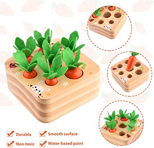 🥕Safe Material:This Montessori toy is made of eco-friendly natural pine wood with water-based paint, Non-toxic, smooth surface & durable. Safer protect for 1 year old boys and girls.