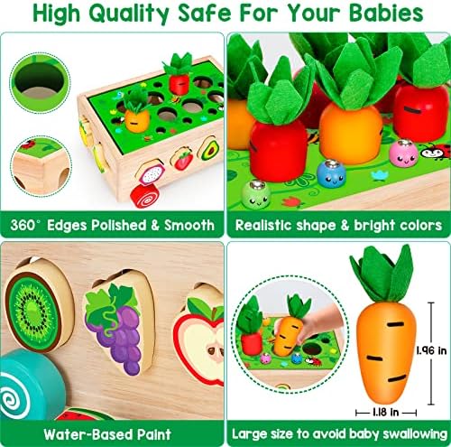 Great Gift Idea For Kids—The colorful designs carrot harvest game is full of fun and educational toy for your baby boys and girls, kids can learn while playing. This Montessori toy makes the perfect and adorable Christmas, birthday, and any holiday gifts for preschool toddlers. Give Kids an engaging option for screen-free fun.