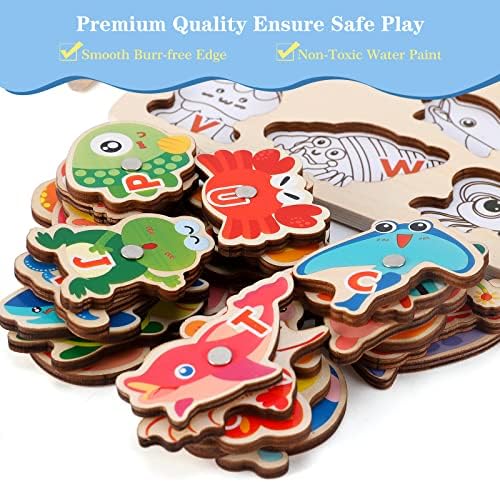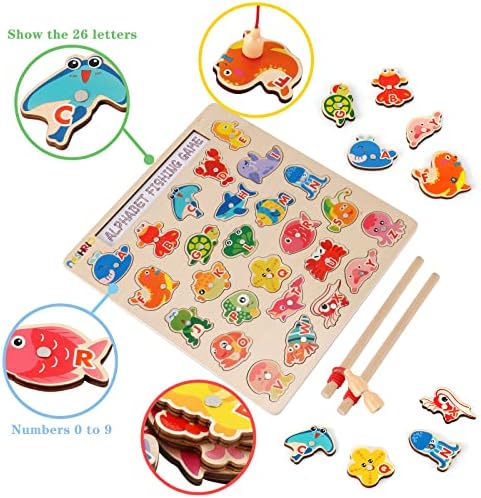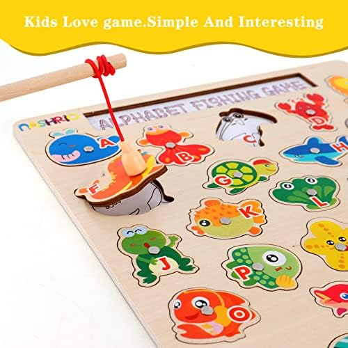 NASHRIO Magnetic Wooden Fishing Game Toy for Toddlers, Alphabet Fish Catching Games Puzzle with Letters, Preschool Learning ABC Educational Toys for 3 4 5 6 Years Old Girl Boy Kids