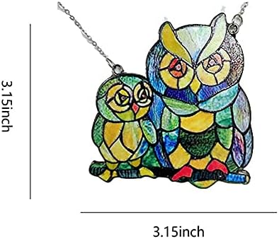 Nerien Stained Panels Window Hangings Handmade Hanging Panel Ornament with Chain for Home Window Garden Decoration Owl