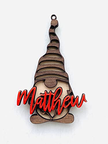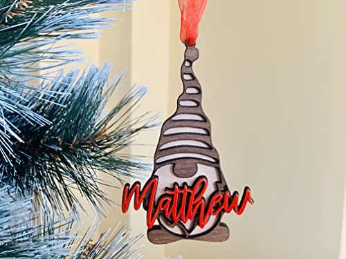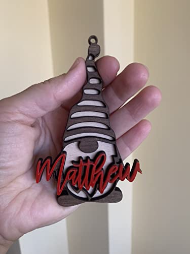 Personalized Christmas Gnomes Name Ornaments Custom Laser Cut Names Gift for Kids Xmas 2022 Handmade Gnome Holiday Tree Decorations 3D Effect Gift Name Tags Housewarming Children’s Christmas Gifts