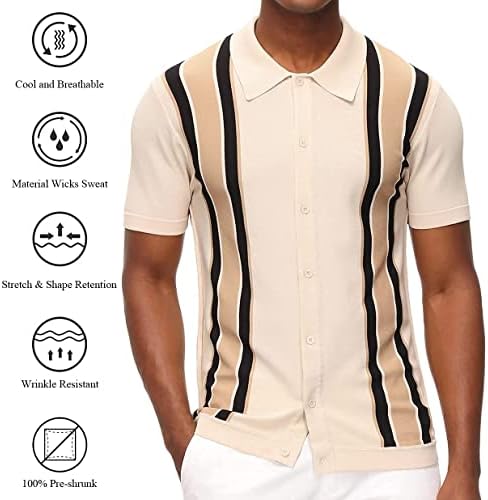 Features: Striped pattern, knitted basic tops, material wicks sweat, 100% pre-shrunk, ribbed hem and cuff, button closure, classic fit, short sleeve, well elastic. High stretch, no pilling and no wrinkling
