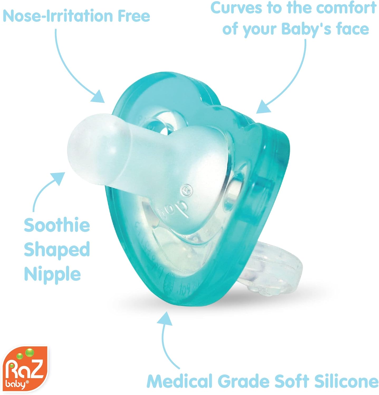 Safety & Comfort: RaZbuddy Pacifier Holders are soft and lightly weighted with embroidered eyes to be safe for babies of any ages, even newborns! JollyPop pacifiers are designed to fit your baby’s mouth and face comfortably, with an ergonomic shape and a patented nipple design.