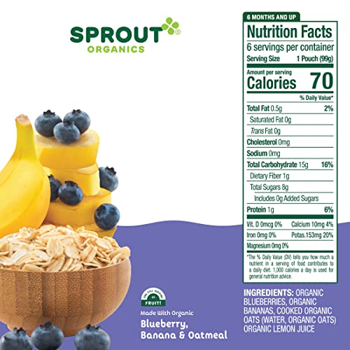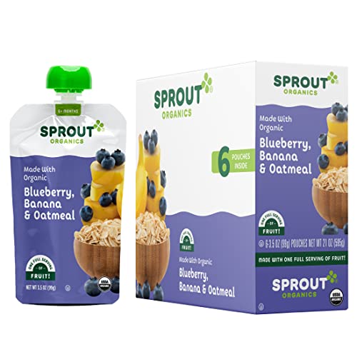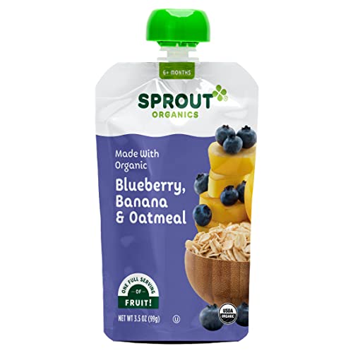 Sprout Organic Baby Food, Stage 2 Pouches, Fruit Veggie & Grain Blend, Blueberry Banana Oatmeal, 3.5 Oz Purees (Pack of 12)
