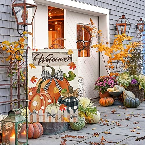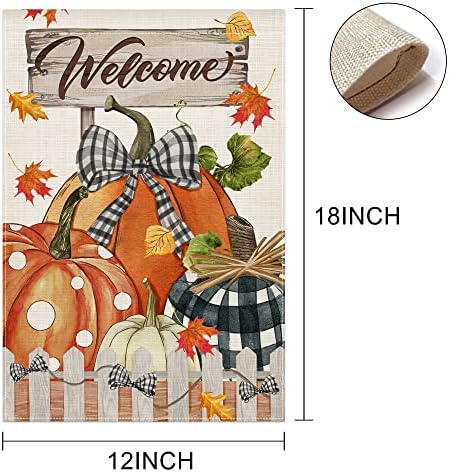 Teacenity Fall Garden Flag 12×18 Inch, Welcome Pumpkins Small Fall Flags Double Sided, Yard Burlap Plaid Seasonal Farmhouse Outdoor Decorations