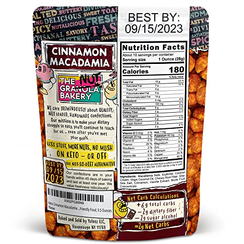 The Nut Bakery Cinnamon Macadamia Keto Snacks | 2g Net Carb | Low Carb Nuts, 9.5 Ounces