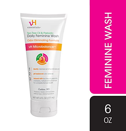 vH essentials, Ph Balanced Daily Feminine Wash, Tea Tree Oil & Prebiotic, 6, Fl Oz, (Pack Of 1) 54306 Clear