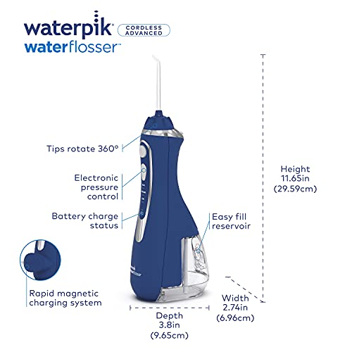 Waterpik Cordless Advanced Water Flosser For Teeth, Gums, Braces, Dental Care With Travel Bag and 4 Tips, ADA Accepted, Rechargeable, Portable, and Waterproof, Blue WP-563