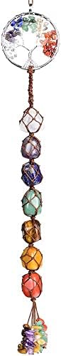 Yunking 7 Chakras Tree Handmade Crystal Window Car Hanging Ornaments Stone Healing Crystal Tree of Life Home Decoration Feng Shui Ornament Yoga Meditation Car Decoration Tumbled Palm Stones